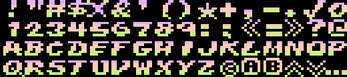 | Elektro | !"#$%^&*(),-./0123456789:;<=>?@abcdefghijklmnopqrstuvwxyz[©]🅐🅑 | 8×16 | 3 colors |
